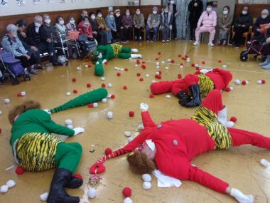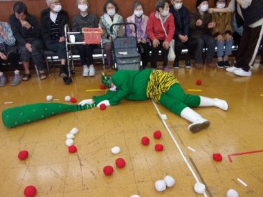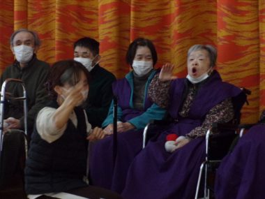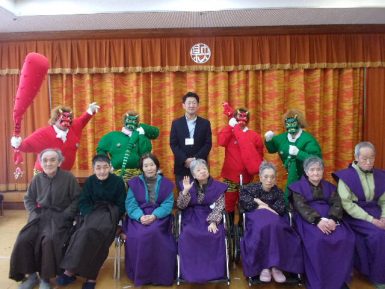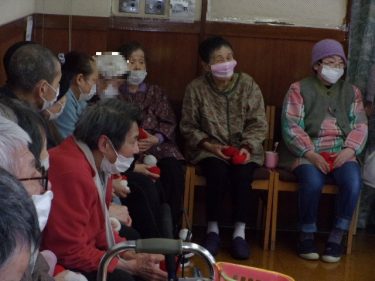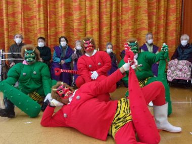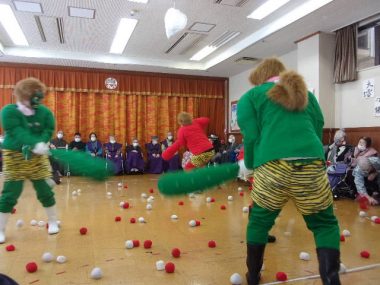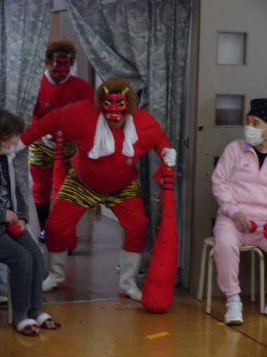 2月3日節分の日、県央寮に鬼がやってきました。「福は~うち!鬼は~そと!」一緒に鬼に豆ならぬ、お手玉を投げて、皆さんの健康と長生きを願いました。