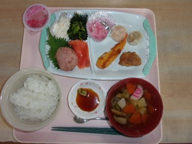 観桜会メニューです。お刺身がとても喜ばれていました。