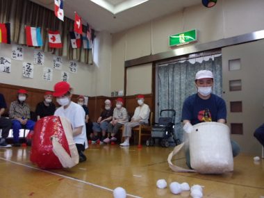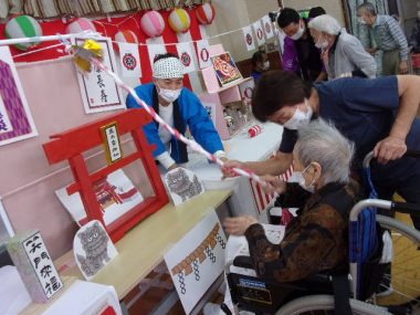 ①去る10月15日県央寮祭を開催しました。職員は法被を着て入所されている方々に楽しんでもらえるよう支援しています。